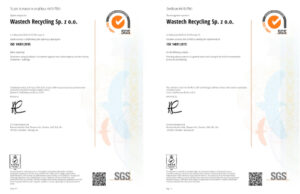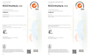 System zarządzania jakością w Wastech Recycling wdrożony został według norm certyfikatów ISO 9001 oraz 14001 oraz certyfikatowy przez niezależną zewnętrzną firmę SGS.